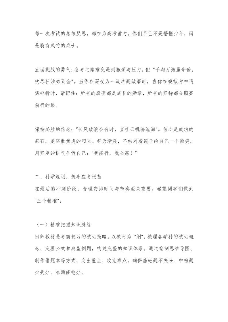 高考动员暨考风考纪教育大会发言稿:以诚信之笔,绘就青春答卷 综合资料 幼师王老师 2025-10-07 教务 资源下载下载价格1.8 下载币VIP免费升级VIP立即购买 ——预览已结束,还剩4页未读——开通会员后可免费下载高清完整文档 阅读全文
