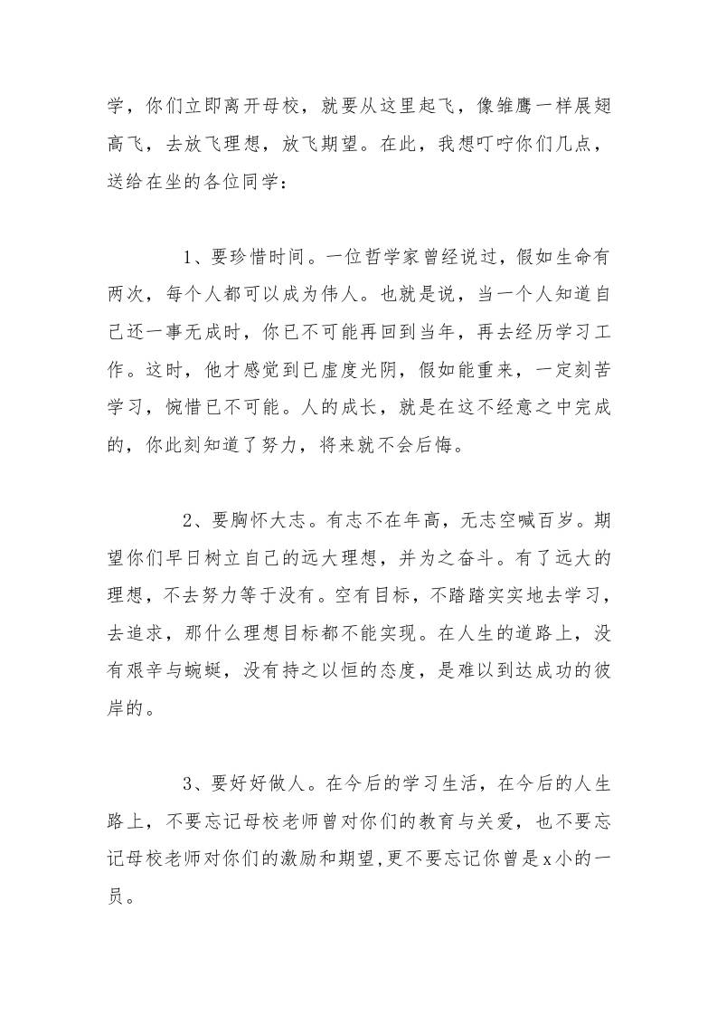 校长在小学毕业典礼上简短讲话,祝同学们过一个愉快而又充实的暑假,顺祝今后的学习生活一帆风顺学业有成 暑假 幼师酸奶 2025-10-07 教务 资源下载下载价格1.8 下载币VIP免费升级VIP立即购买 ——预览已结束,还剩1页未读——开通会员后可免费下载高清完整文档 阅读全文