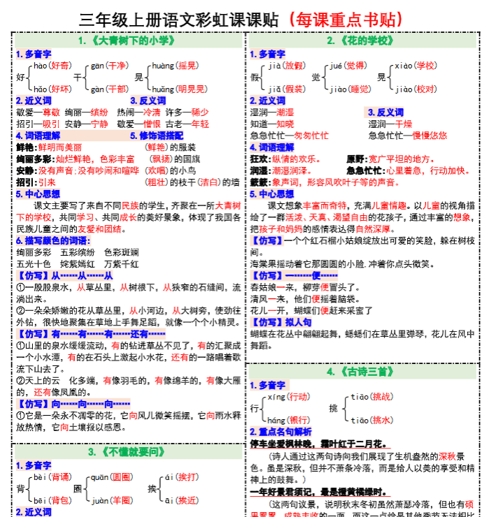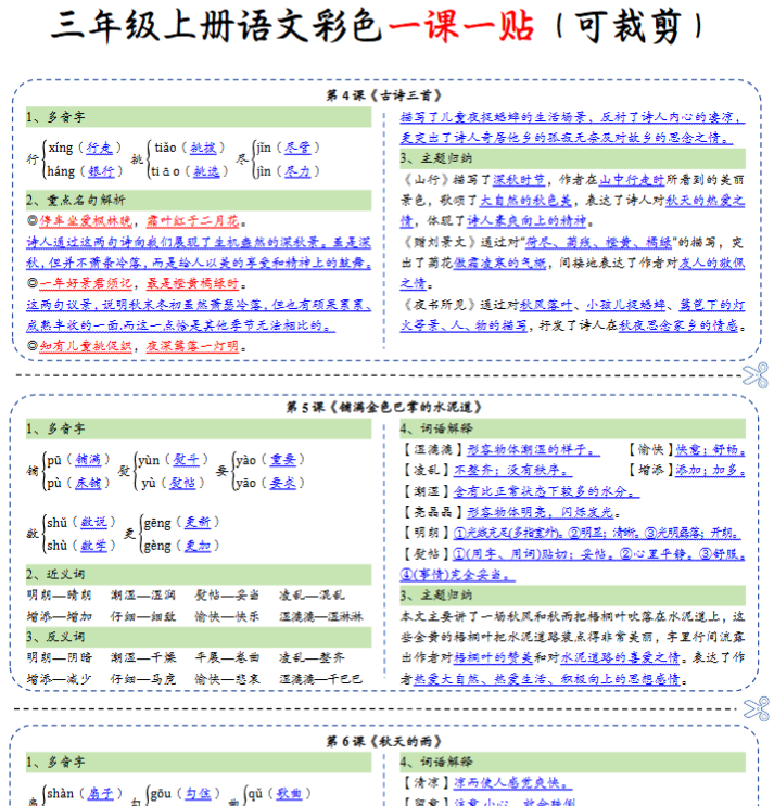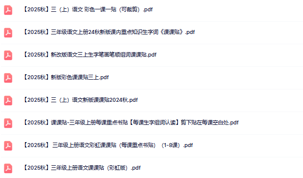 2025秋语文上册–三年级语文课课贴8款【高清无水印版本】
