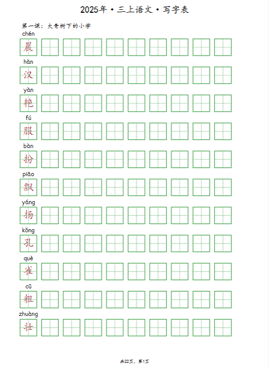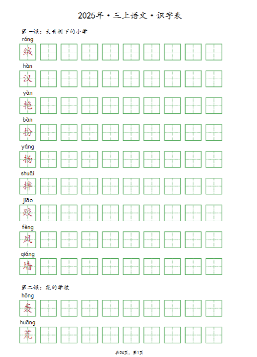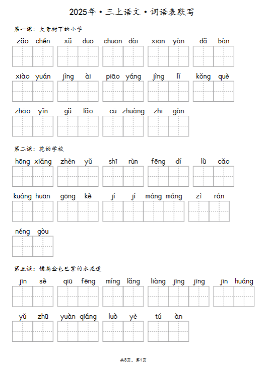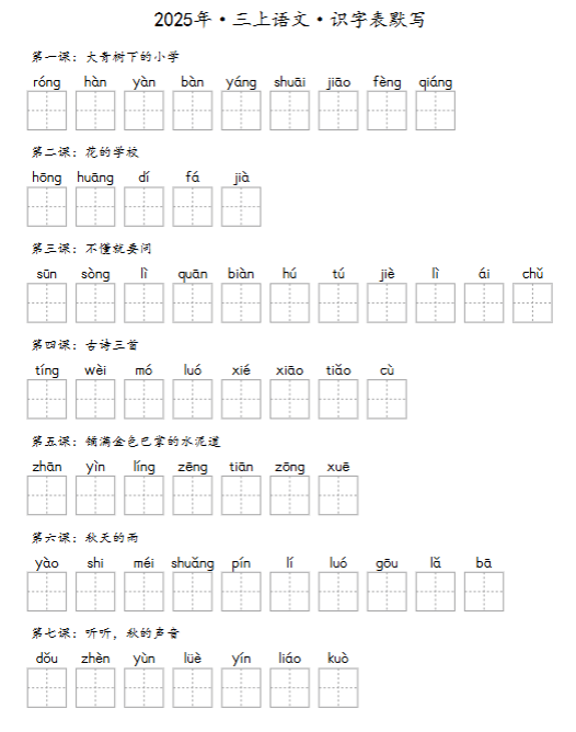 2025秋三上《识字表》《写字表》《词语表》抄写默写