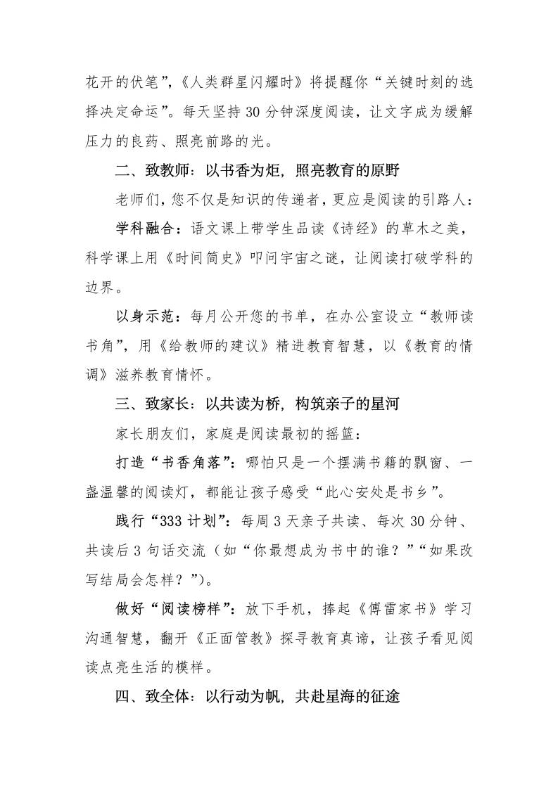 2025年世界读书日致全体师生的阅读倡议书 阅读 幼师PPT 2025-10-06 教务 资源下载下载价格1.2 下载币VIP免费升级VIP立即购买 ——预览已结束,还剩1页未读——开通会员后可免费下载高清完整文档 阅读全文