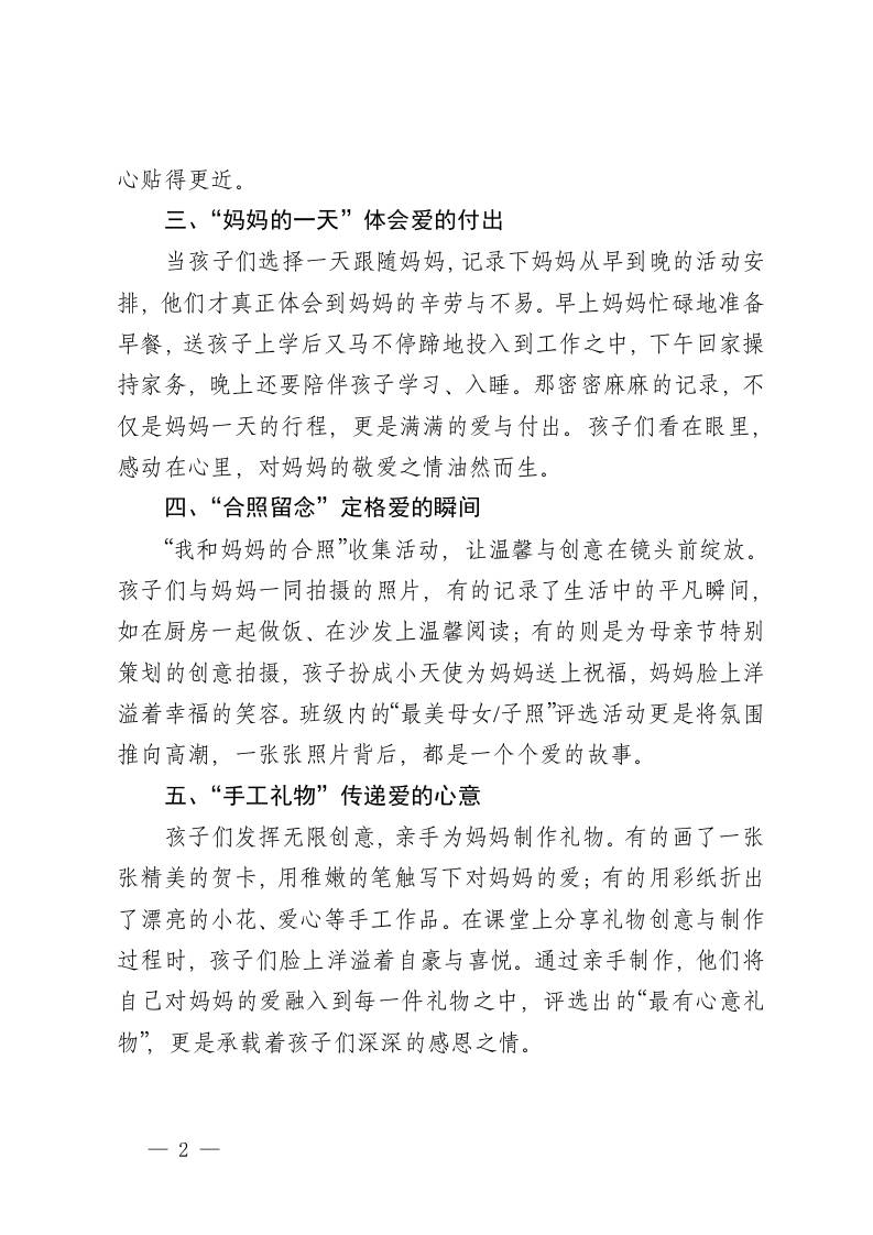 “妈妈我有多爱你”——XX小学母亲节活动圆满落幕 综合资料 幼师王老师 2025-10-06 教务 资源下载下载价格1.2 下载币VIP免费升级VIP立即购买 ——预览已结束,还剩1页未读——开通会员后可免费下载高清完整文档 阅读全文