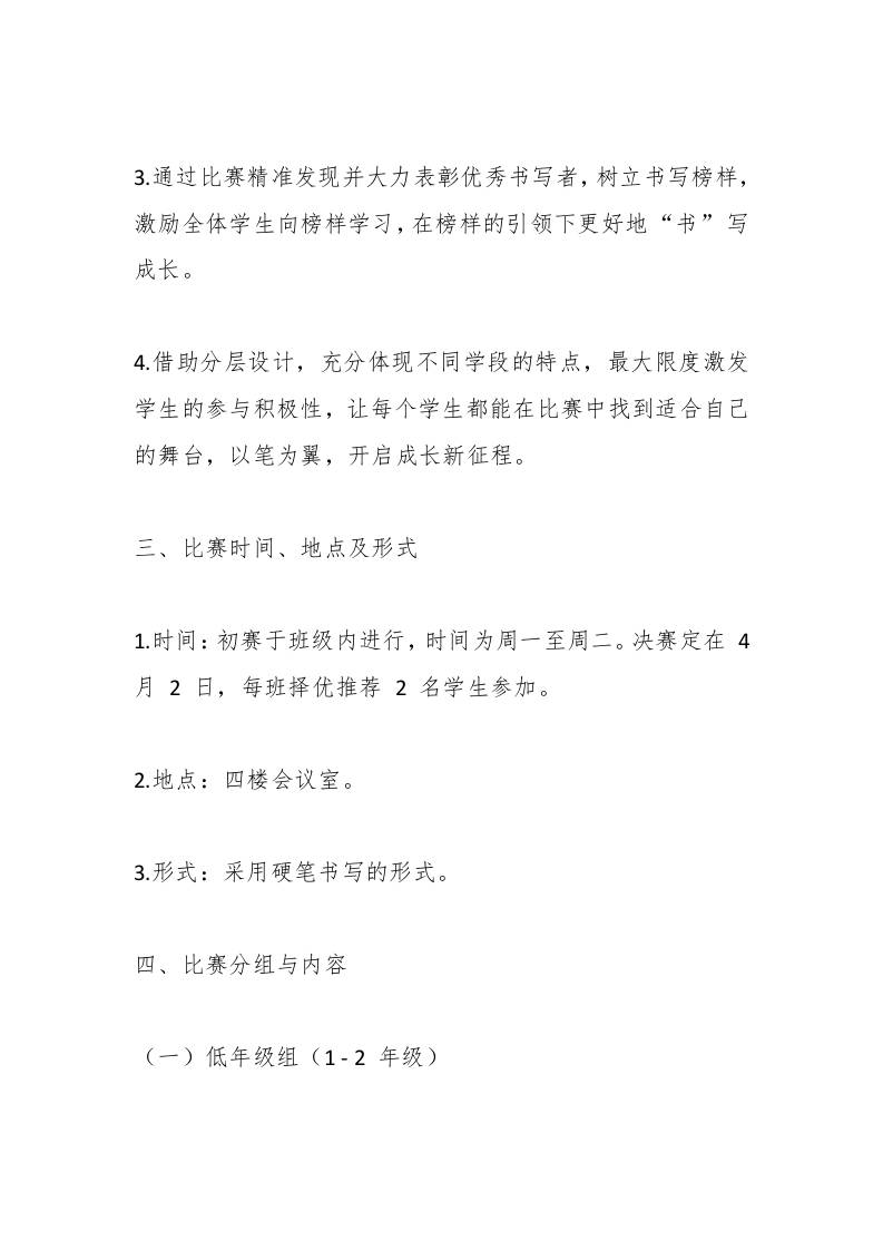 小学学校学生书写大赛方案:以笔为翼,‘书’写成长 综合资料 水果叶子 2025-10-06 教务 资源下载下载价格1.2 下载币VIP免费升级VIP立即购买 ——预览已结束,还剩5页未读——开通会员后可免费下载高清完整文档 阅读全文