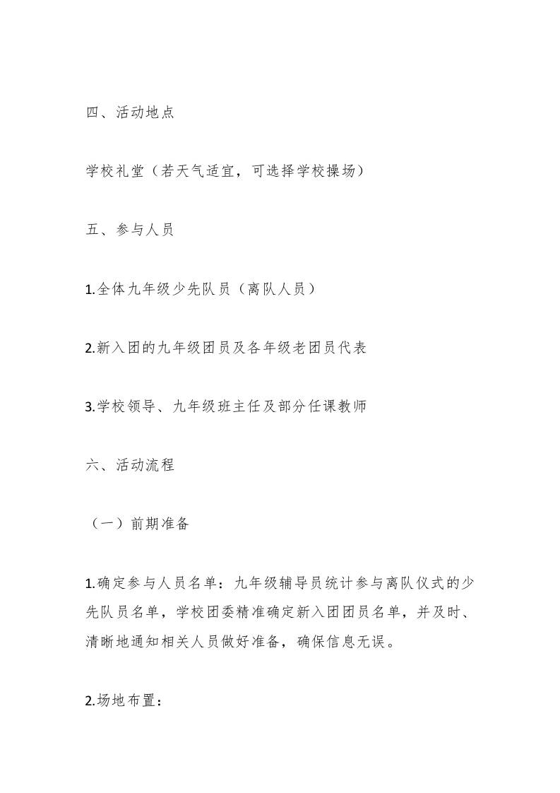 学校九年级学生离队入团宣誓仪式活动方案 综合资料 栀晴 2025-10-06 教务 资源下载下载价格0.8 下载币VIP免费升级VIP立即购买 ——预览已结束,还剩8页未读——开通会员后可免费下载高清完整文档 阅读全文