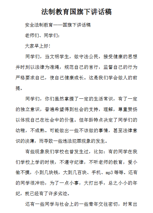 6份法制教育国旗下讲话最新整理版【高清可编辑打包】