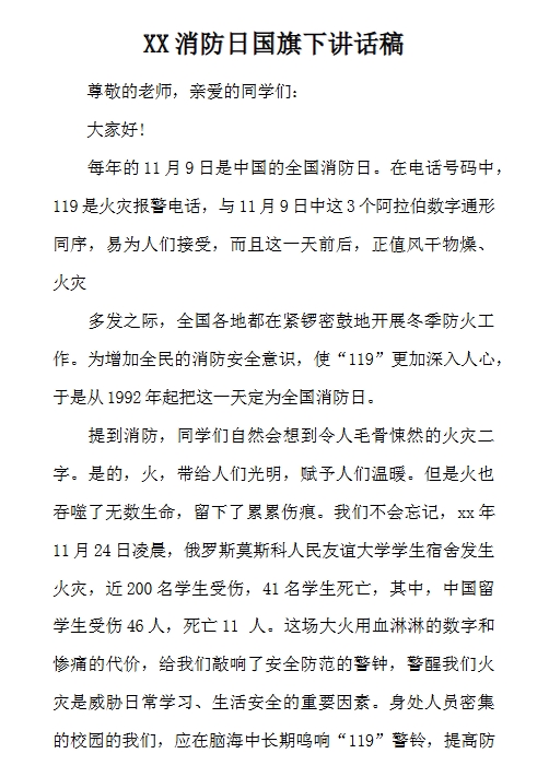 4份消防国旗下讲话最新整理版【高清可编辑打包】