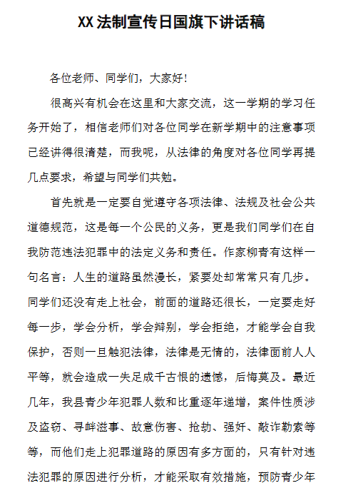 15份法制宣传国旗下讲话最新整理版【高清可编辑打包】