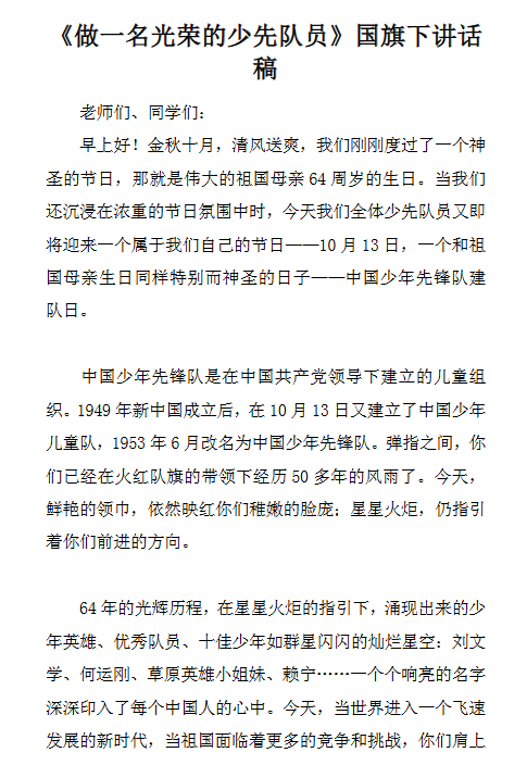 7份少先队员国旗下讲话最新整理版【高清可编辑打包】