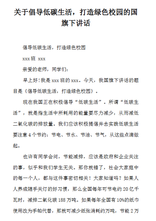 9份低碳生活国旗下讲话最新整理版【高清可编辑打包】