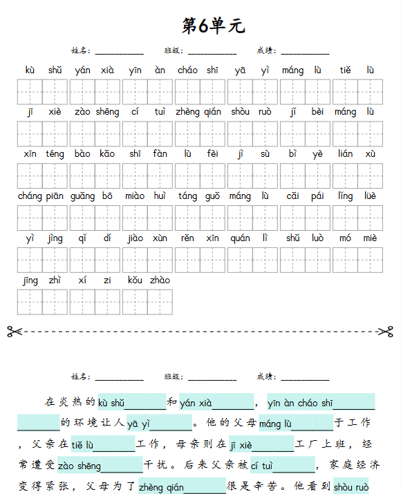 【语文试卷】二下语文第一单元拔尖测试卷(含答案5页)