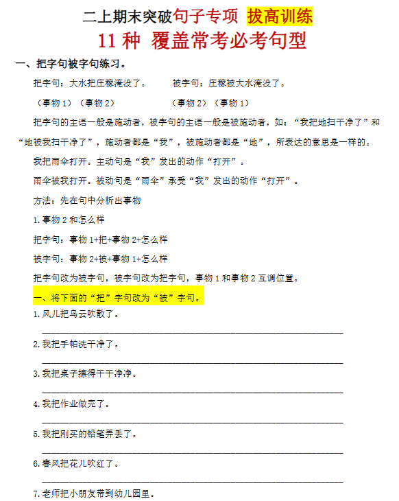 【新版】16份二年级上册语文句式训练汇总版【高清无水印整理版】