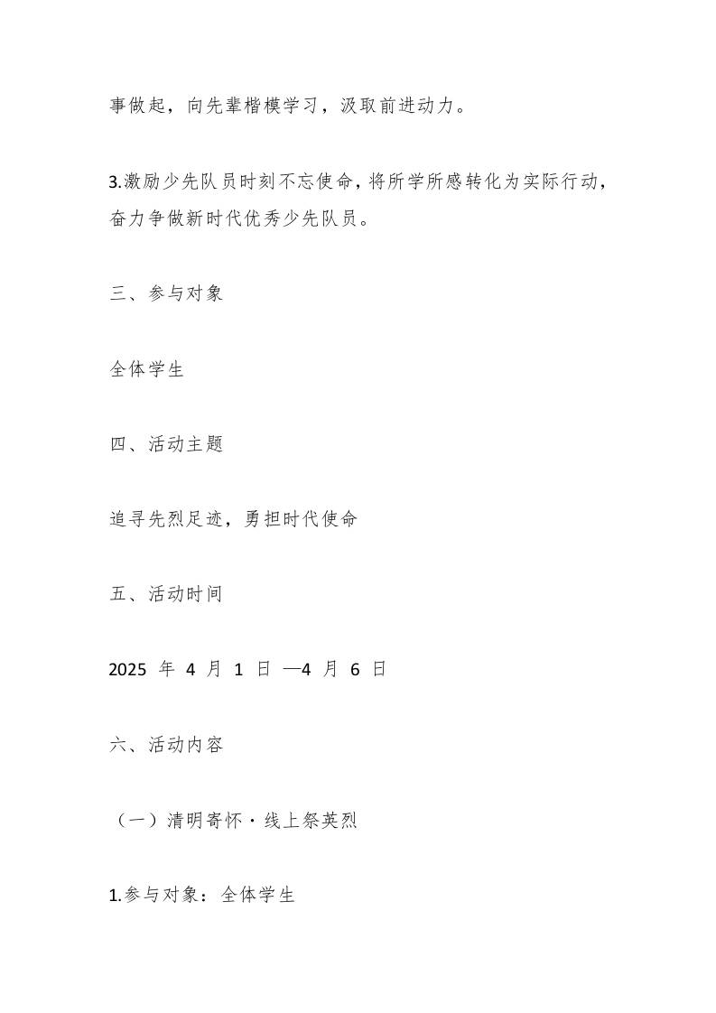 2025年中小学清明节主题活动方案:追寻先烈足迹,勇担时代使命 综合资料 幼师王老师 2025-10-06 教务 资源下载下载价格0.8 下载币VIP免费升级VIP立即购买 ——预览已结束,还剩5页未读——开通会员后可免费下载高清完整文档 阅读全文