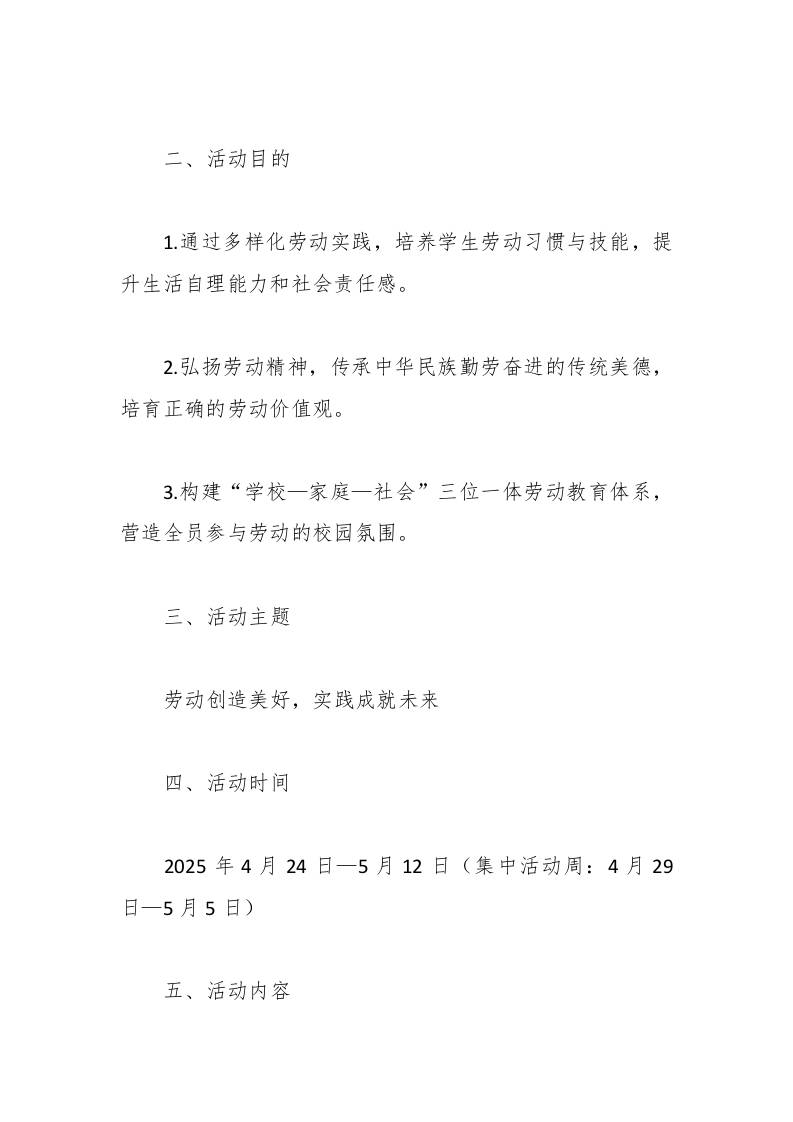 “劳动筑梦新时代,实践赋能向未来”——2025年学校五一劳动节主题教育活动方案 综合资料 幼师李老师 2025-10-05 教务 资源下载下载价格0.8 下载币VIP免费升级VIP立即购买 ——预览已结束,还剩4页未读——开通会员后可免费下载高清完整文档 阅读全文