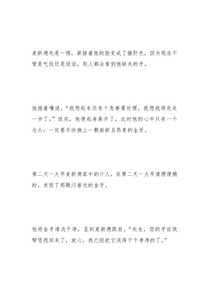 故事代替道理《富商的“新”金牙》 综合资料 雄鹰老师 2025-10-05 教务 资源下载下载价格1.2 下载币VIP免费升级VIP立即购买 ——预览已结束,还剩7页未读——开通会员后可免费下载高清完整文档 阅读全文