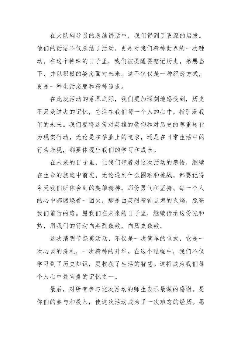 4.清明节祭奠活动总结 综合资料 幼师优势 2025-10-05 教务 资源下载下载价格0.8 下载币VIP免费升级VIP立即购买 ——预览已结束,还剩1页未读——开通会员后可免费下载高清完整文档 阅读全文