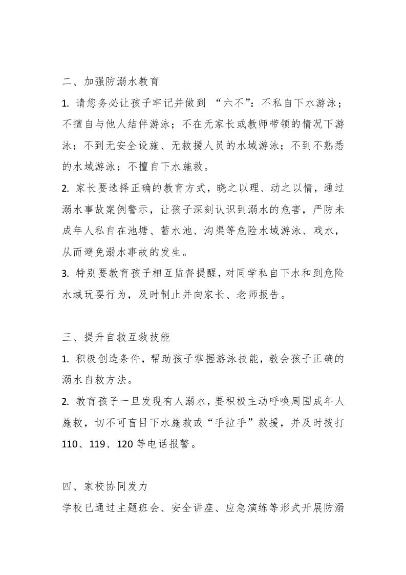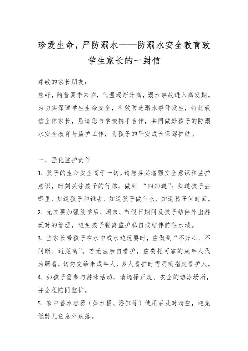 珍爱生命,严防溺水——防溺水安全教育致学生家长的一封信 综合资料 2025-10-03 教务 资源下载下载价格0.8 下载币VIP免费升级VIP立即购买 ——预览已结束,还剩1页未读——开通会员后可免费下载高清完整文档 阅读全文