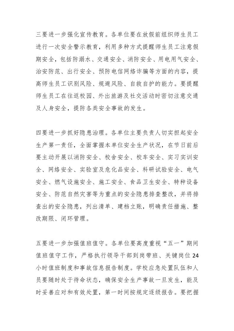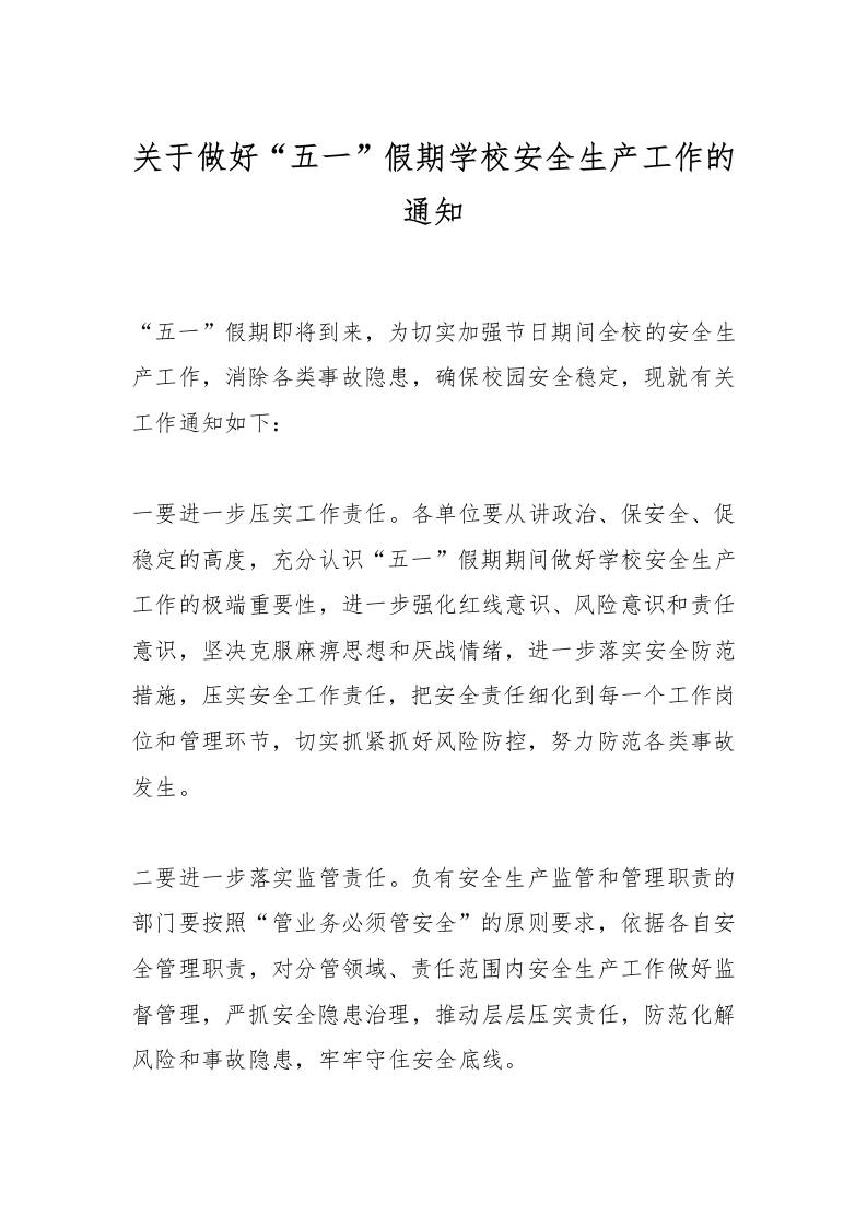 关于做好“五一”假期学校安全生产工作的通知 综合资料 幼师PPT 2025-10-03 教务 资源下载下载价格1.8 下载币VIP免费升级VIP立即购买 ——预览已结束,还剩1页未读——开通会员后可免费下载高清完整文档 阅读全文