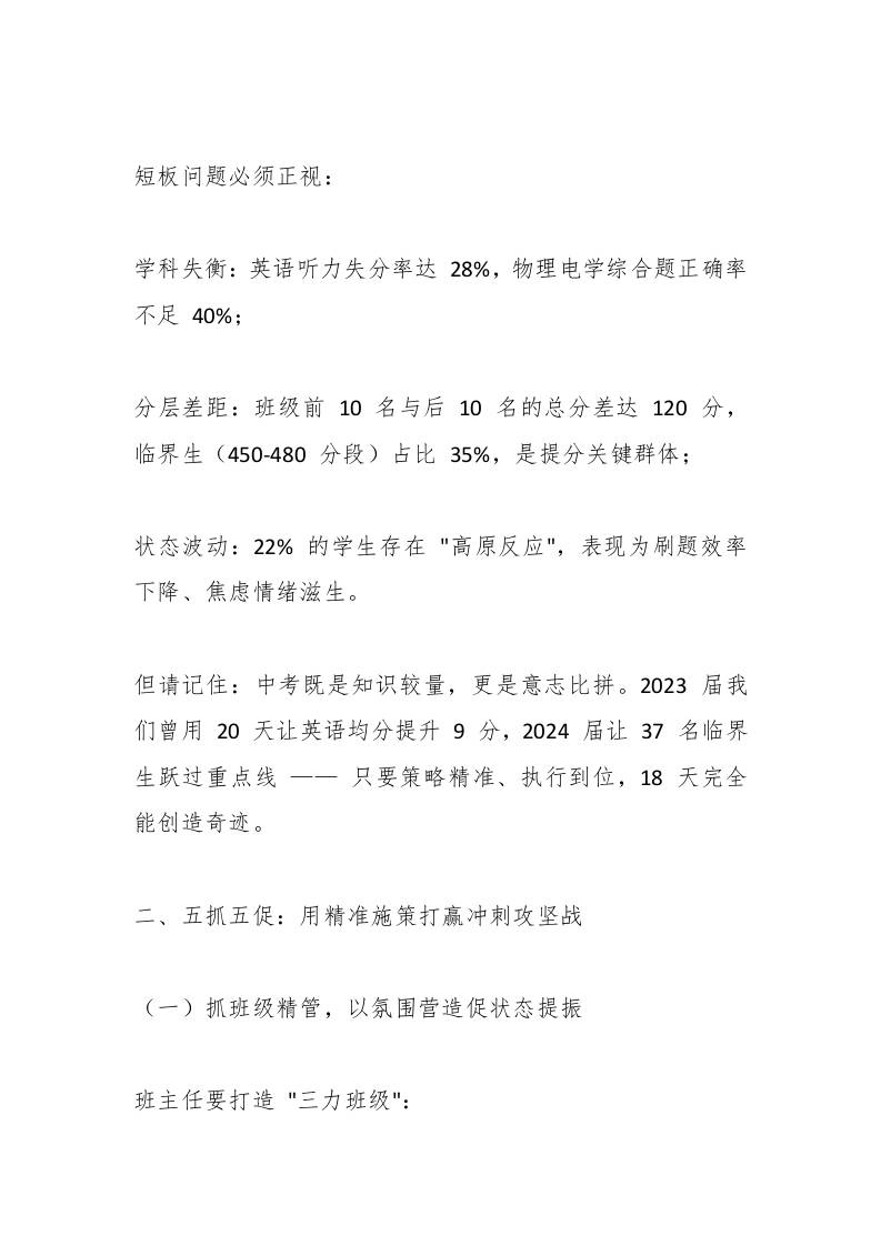 校长在初三毕业班工作专题会议上讲话:18天是梦想绽放前的最后蓄力,是马拉松冲刺的关键一程 综合资料 刘波老师 2025-10-03 教务 资源下载下载价格1.2 下载币VIP免费升级VIP立即购买 ——预览已结束,还剩5页未读——开通会员后可免费下载高清完整文档 阅读全文