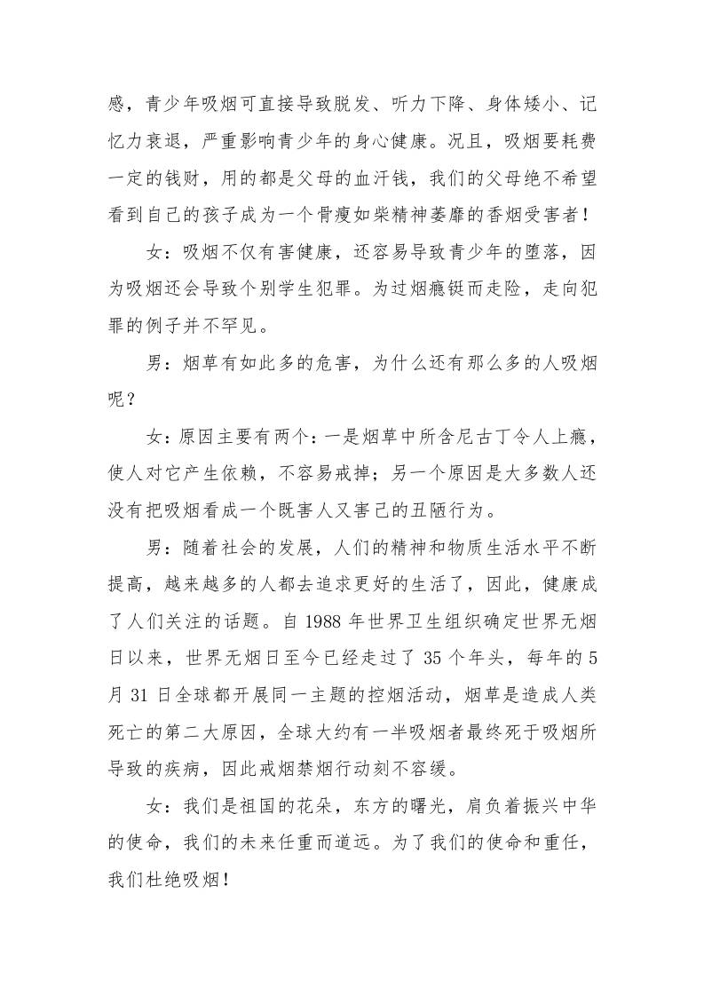 远离烟草,从你我做起——第38个“世界无烟日”红领巾广播稿 综合资料 幼师郝雪 2025-10-02 教务 资源下载下载价格1.8 下载币VIP免费升级VIP立即购买 ——预览已结束,还剩2页未读——开通会员后可免费下载高清完整文档 阅读全文