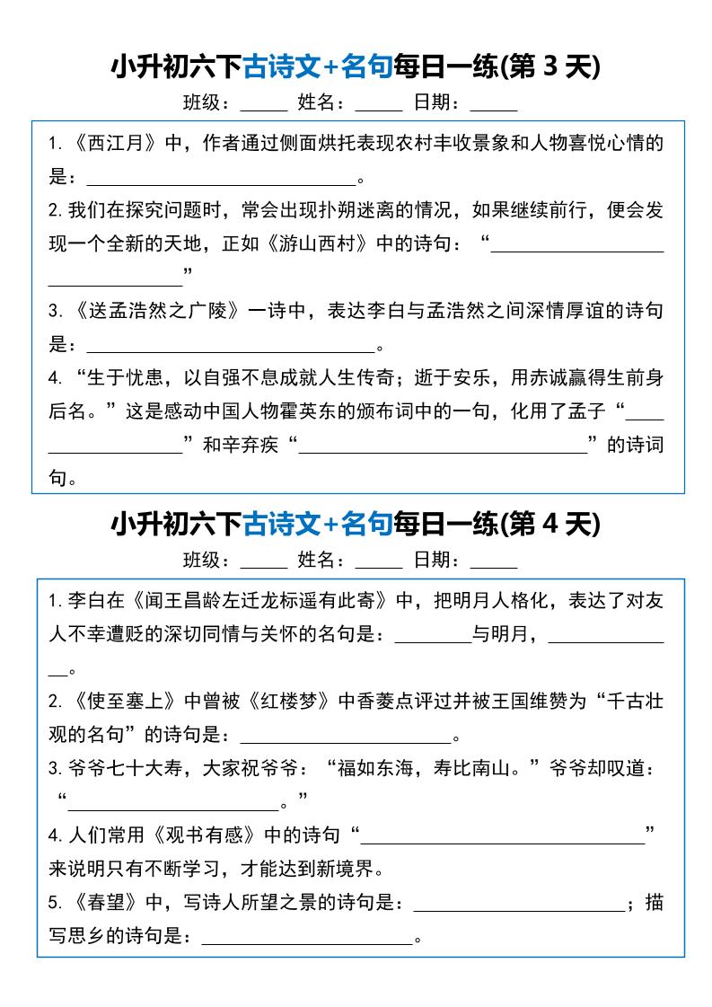 小升初六年级下册语文古诗文+名句每日一练20天 专项练习 雄鹰老师 2025-10-25 小升初 资源下载下载价格0.8 下载币VIP免费升级VIP立即购买 ——预览已结束,还剩18页未读——开通会员后可免费下载高清完整文档 阅读全文