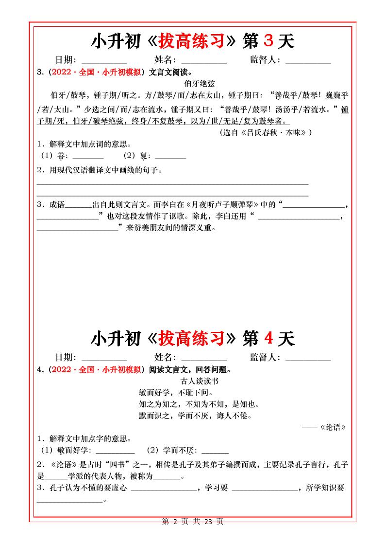 小升初语文《拔高练习》20天_ 专项练习 雄鹰老师 2025-10-25 小升初 资源下载下载价格1.8 下载币VIP免费升级VIP立即购买 ——预览已结束,还剩21页未读——开通会员后可免费下载高清完整文档 阅读全文