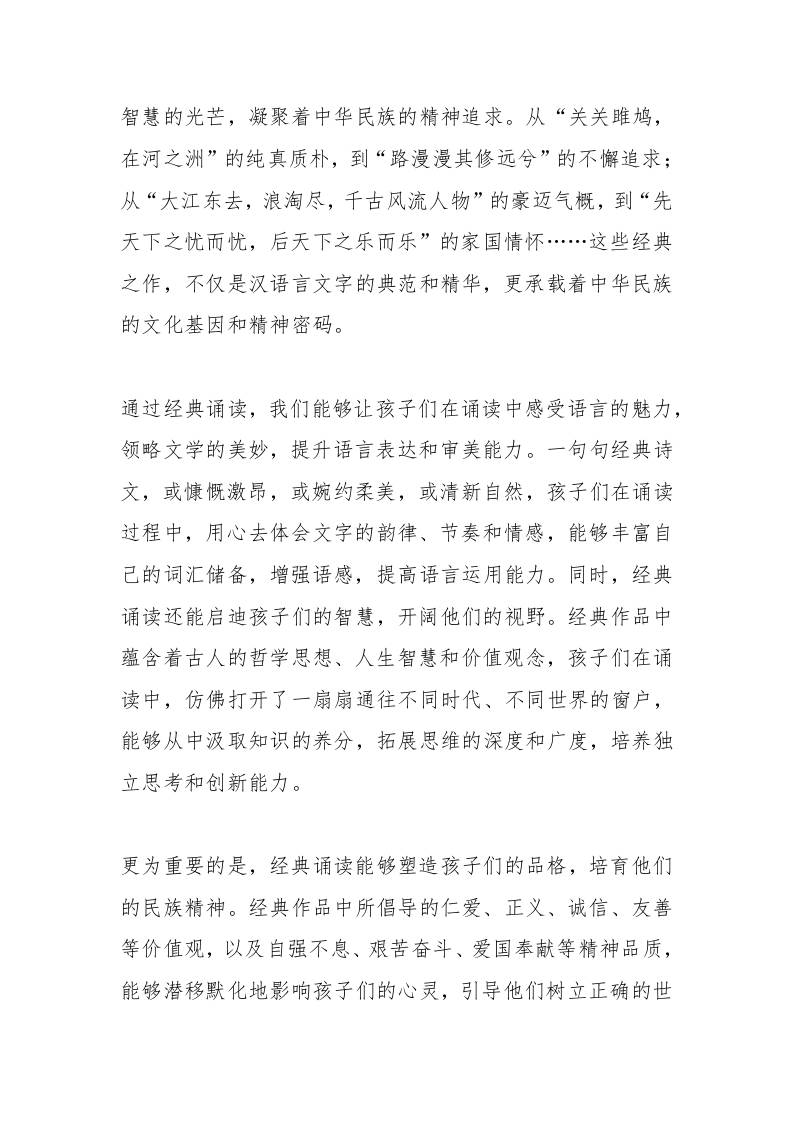 校长在六一儿童节经典诵读比赛上致辞:家庭是孩子成长的第一课堂,家长是孩子的第一任老师 综合资料 2025-10-02 教务 资源下载下载价格0.8 下载币VIP免费升级VIP立即购买 ——预览已结束,还剩2页未读——开通会员后可免费下载高清完整文档 阅读全文
