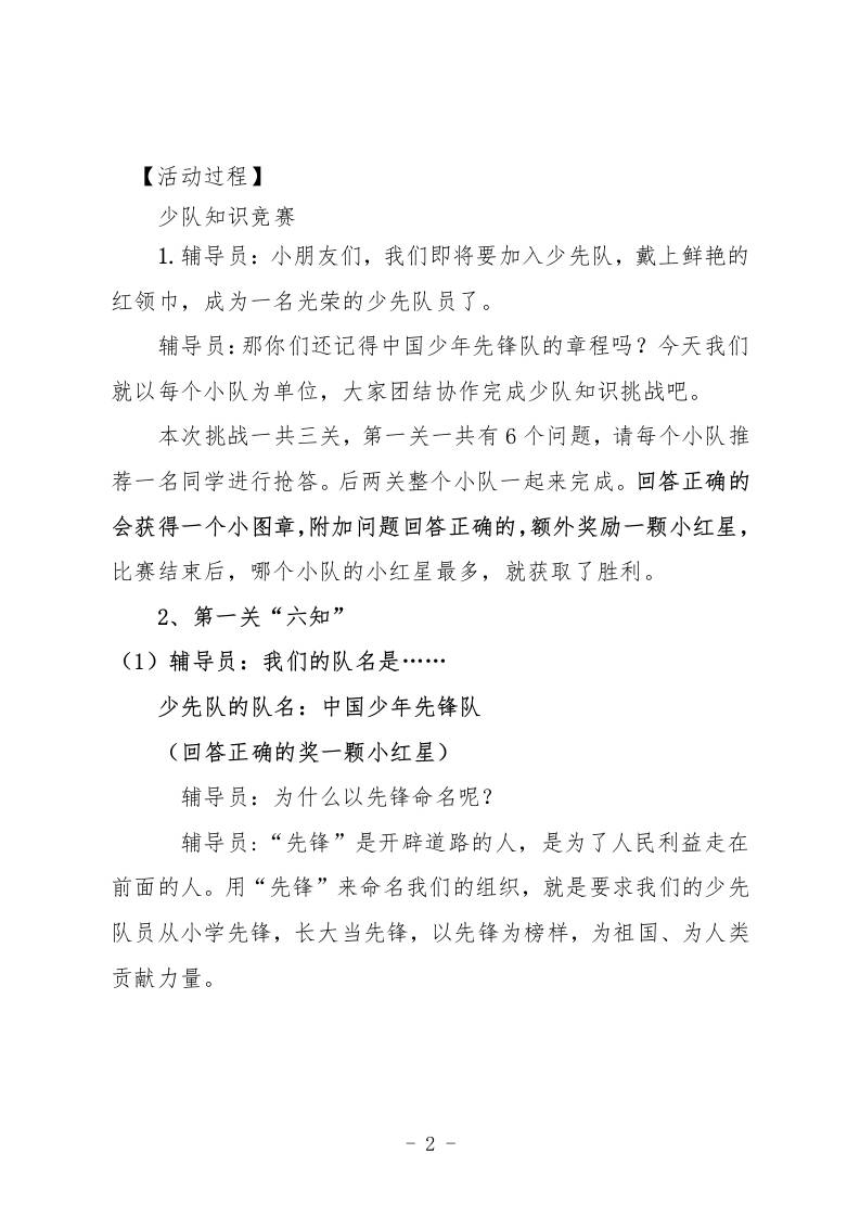 2025“六一”入队仪式队前教育六知六会一做教案(队前知识小竞赛) 知识点 幼师李老师 2025-10-01 教务 资源下载下载价格1.2 下载币VIP免费升级VIP立即购买 ——预览已结束,还剩6页未读——开通会员后可免费下载高清完整文档 阅读全文