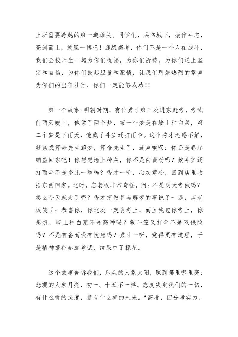 高考前一天,校长在出征仪式上动员精彩讲话,用3个故事鼓励亲爱的同学们,放心地去拼! 综合资料 水果叶子 2025-10-01 教务 资源下载下载价格1.8 下载币VIP免费升级VIP立即购买 ——预览已结束,还剩3页未读——开通会员后可免费下载高清完整文档 阅读全文