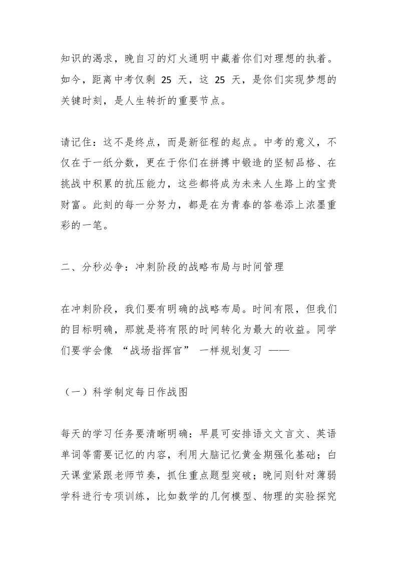 2025中考倒计时25天动员会,校长讲话:让母校因你们的拼搏而骄傲,让青春因这次冲刺而闪耀 综合资料 刘波老师 2025-10-01 教务 资源下载下载价格1.8 下载币VIP免费升级VIP立即购买 ——预览已结束,还剩5页未读——开通会员后可免费下载高清完整文档 阅读全文