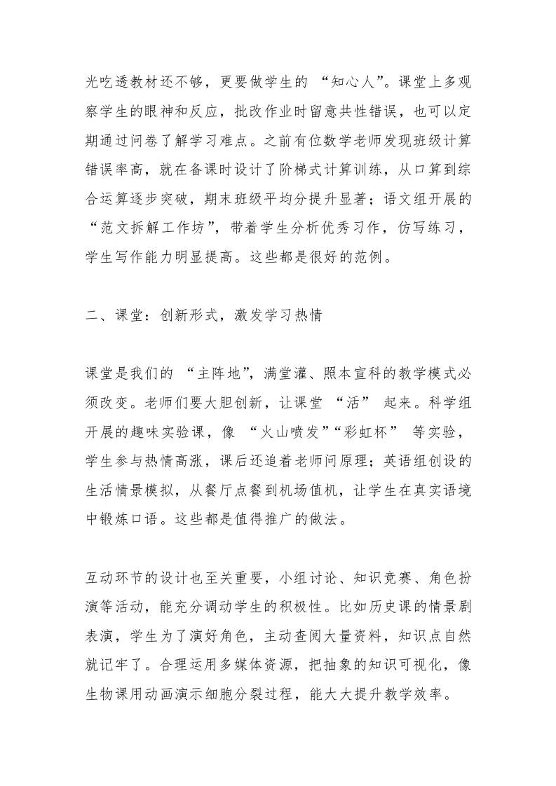 教学副校长在教师会上讲话:相信只要我们齐心协力,一定能让每个学生都取得进步,共同提升学校的教学质量 综合资料 王赞 2025-09-30 教务 资源下载下载价格1.8 下载币VIP免费升级VIP立即购买 ——预览已结束,还剩3页未读——开通会员后可免费下载高清完整文档 阅读全文