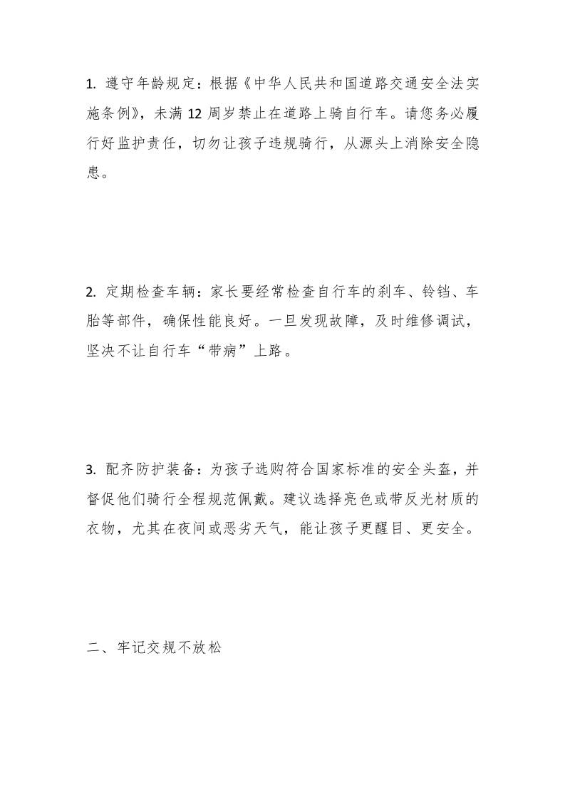 关于学生骑自行车上下学安全致家长的一封信 综合资料 幼师优势 2025-09-30 教务 资源下载下载价格0.8 下载币VIP免费升级VIP立即购买 ——预览已结束,还剩3页未读——开通会员后可免费下载高清完整文档 阅读全文