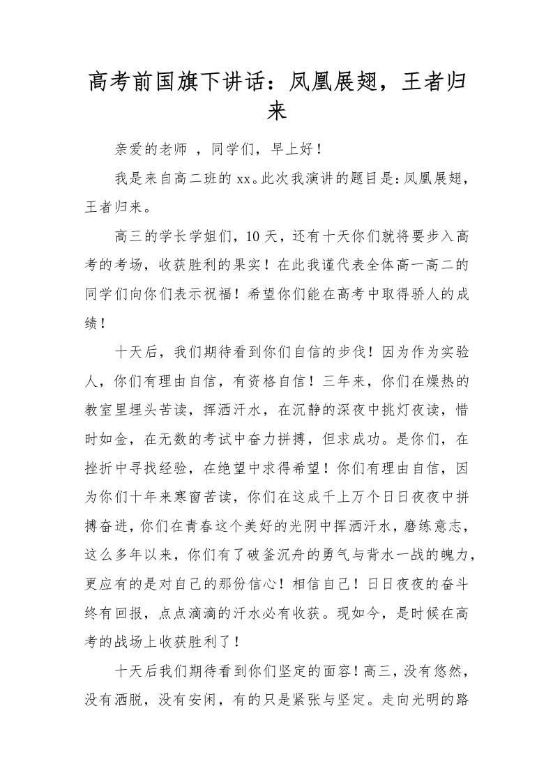 高考前国旗下讲话:凤凰展翅,王者归来 综合资料 刘波老师 2025-09-29 教务 资源下载下载价格1.2 下载币VIP免费升级VIP立即购买 ——预览已结束,还剩1页未读——开通会员后可免费下载高清完整文档 阅读全文