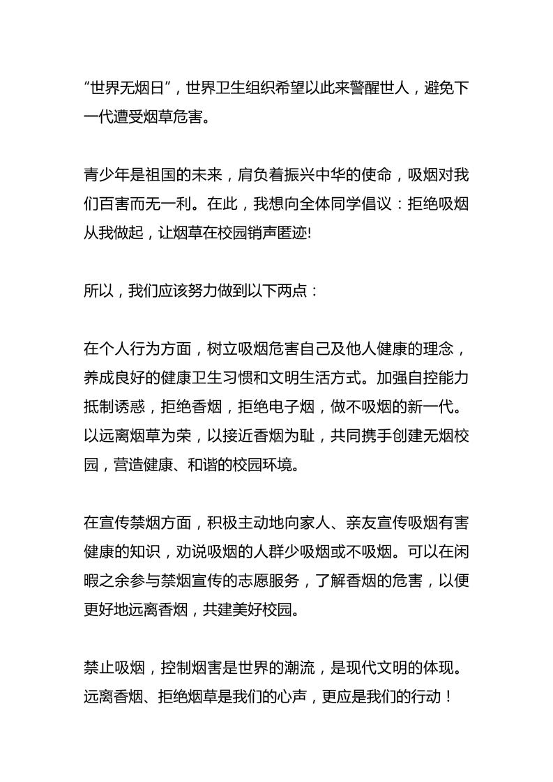 世界无烟日,校长在国旗下讲话:无烟校园,你我同行 综合资料 幼师郝雪 2025-09-29 教务 资源下载下载价格0.8 下载币VIP免费升级VIP立即购买 ——预览已结束,还剩1页未读——开通会员后可免费下载高清完整文档 阅读全文