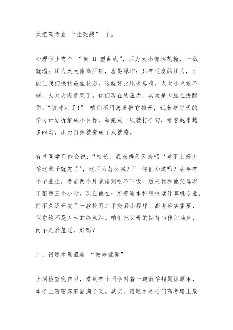 高考前心理疏导,校长讲话:高考只是人生的一个逗号,而不是句号 综合资料 2025-09-29 教务 资源下载下载价格0.8 下载币VIP免费升级VIP立即购买 ——预览已结束,还剩4页未读——开通会员后可免费下载高清完整文档 阅读全文