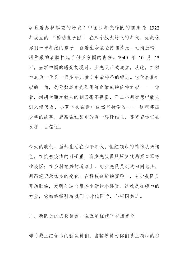 校长在六一儿童节入队仪式上的讲话:愿你们的童年如彩虹般绚烂,如星辰般明亮 综合资料 栀晴 2025-09-29 教务 资源下载下载价格0.8 下载币VIP免费升级VIP立即购买 ——预览已结束,还剩3页未读——开通会员后可免费下载高清完整文档 阅读全文