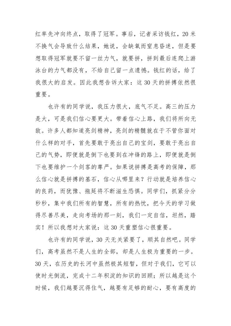 高考倒计时国旗下讲话稿:笑迎挑战,超越自我 综合资料 雄鹰老师 2025-09-29 教务 资源下载下载价格1.8 下载币VIP免费升级VIP立即购买 ——预览已结束,还剩2页未读——开通会员后可免费下载高清完整文档 阅读全文