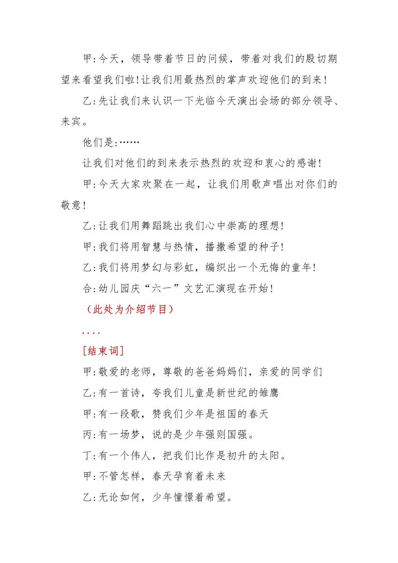 六一儿童节主持稿串词 综合资料 幼师优势 2025-09-27 教务 资源下载下载价格0.8 下载币VIP免费升级VIP立即购买 ——预览已结束,还剩1页未读——开通会员后可免费下载高清完整文档 阅读全文