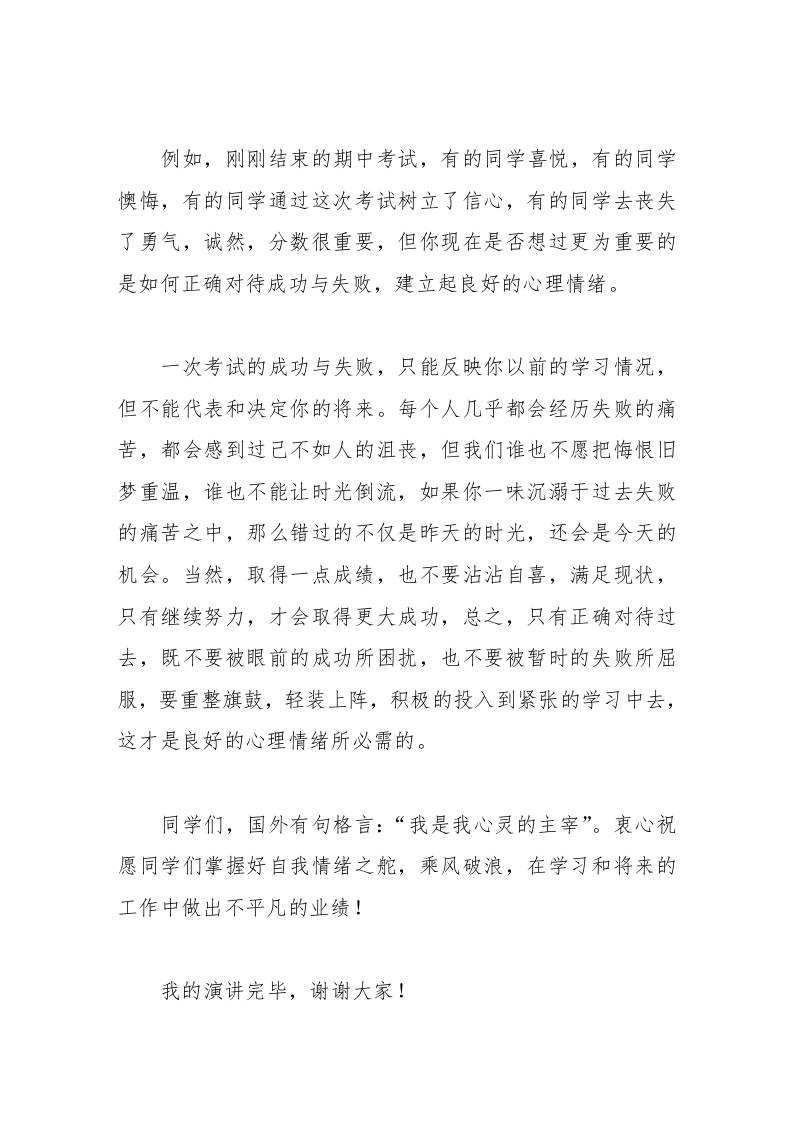 心理健康教育,校长在国旗下讲话怎样保持稳定愉快的情绪 综合资料 幼师李老师 2025-09-27 教务 资源下载下载价格1.2 下载币VIP免费升级VIP立即购买 ——预览已结束,还剩1页未读——开通会员后可免费下载高清完整文档 阅读全文