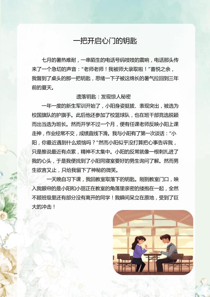 06【高中】【育人故事】《一把开启心门的钥匙》 综合资料 幼师常 2025-09-27 教务 资源下载下载价格0.8 下载币VIP免费升级VIP立即购买 ——预览已结束,还剩4页未读——开通会员后可免费下载高清完整文档 阅读全文
