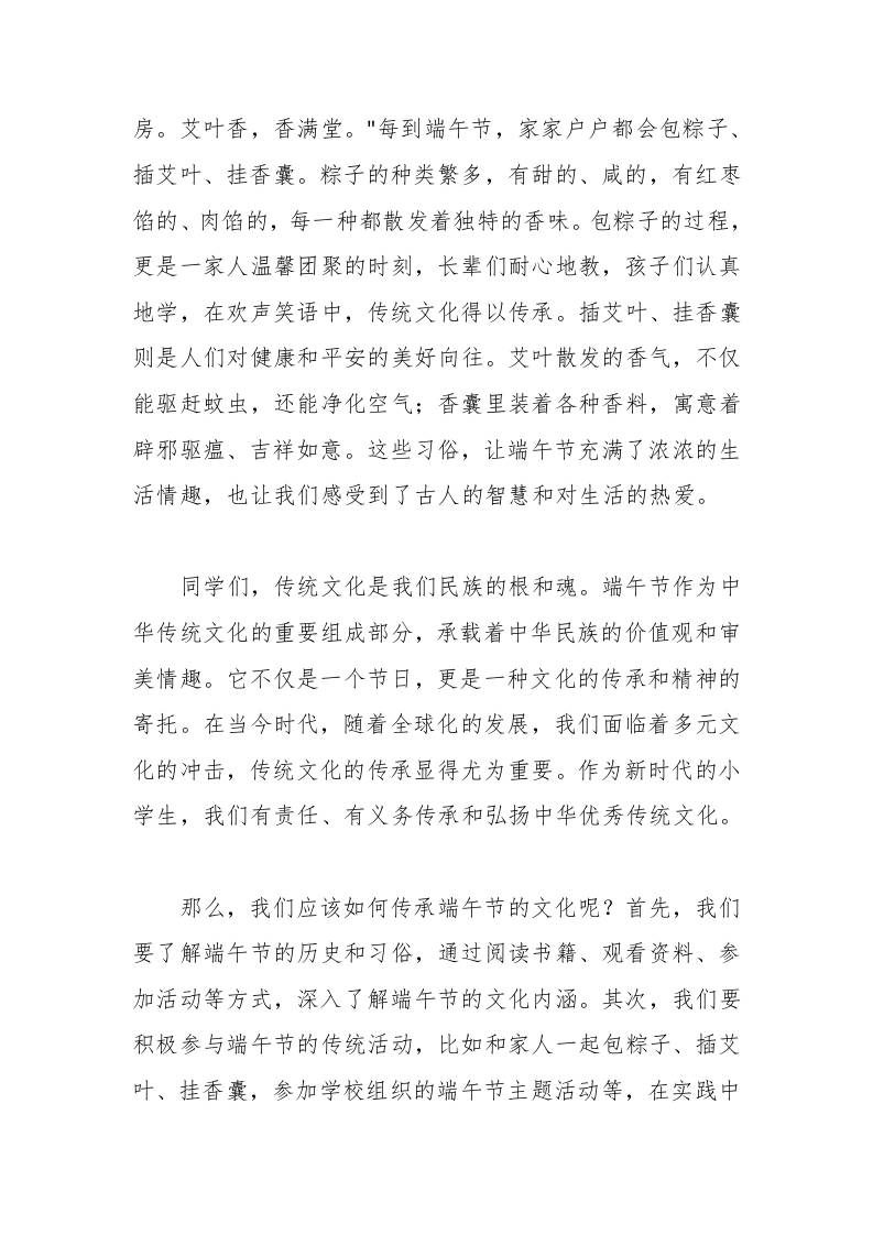 粽叶飘香话端午,传统文化润心田——2025年端午节校长国旗下讲话稿 综合资料 雄鹰老师 2025-09-27 教务 资源下载下载价格1.8 下载币VIP免费升级VIP立即购买 ——预览已结束,还剩1页未读——开通会员后可免费下载高清完整文档 阅读全文
