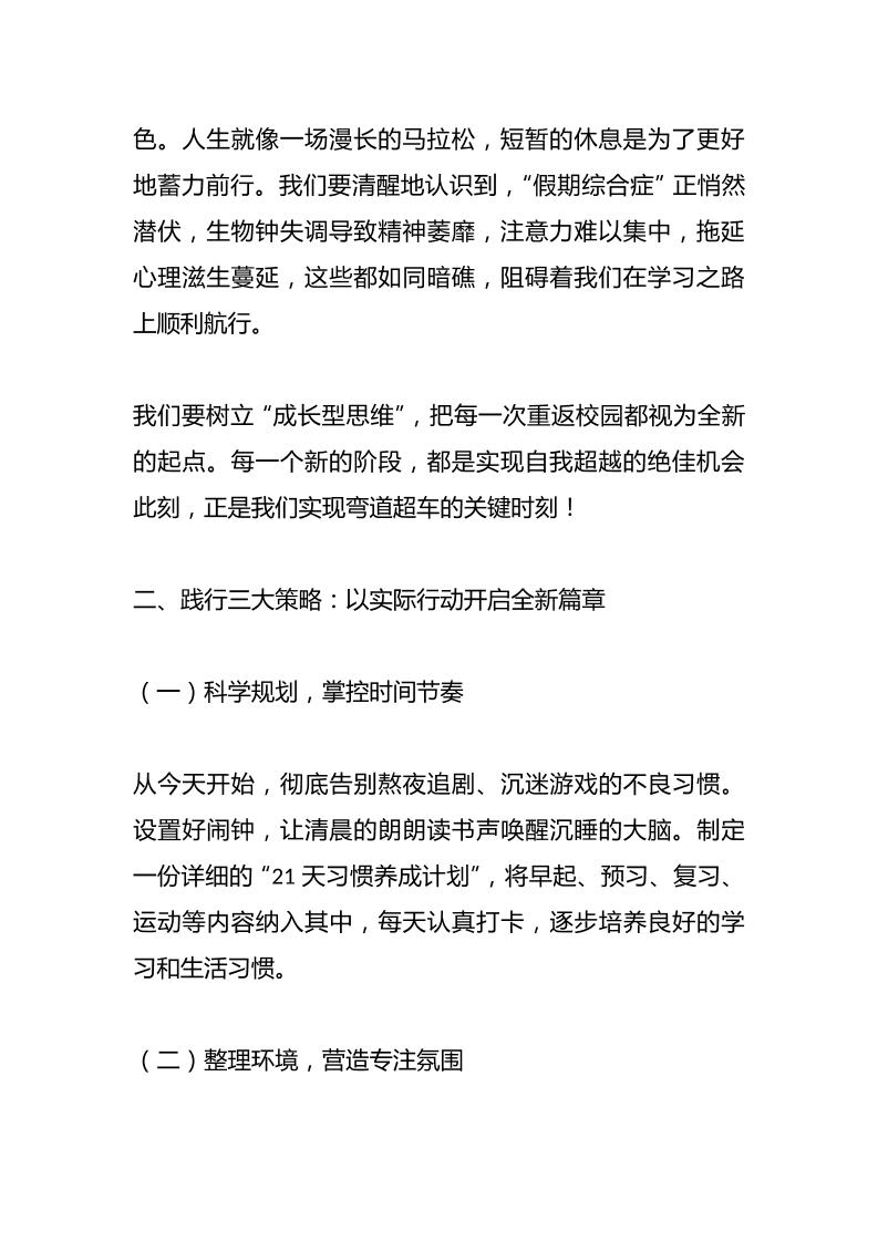 五一假期后学生收心动员,校长讲话:奋进新程正当时聚力逐梦向未来 综合资料 幼师优势 2025-09-27 教务 资源下载下载价格1.2 下载币VIP免费升级VIP立即购买 ——预览已结束,还剩2页未读——开通会员后可免费下载高清完整文档 阅读全文