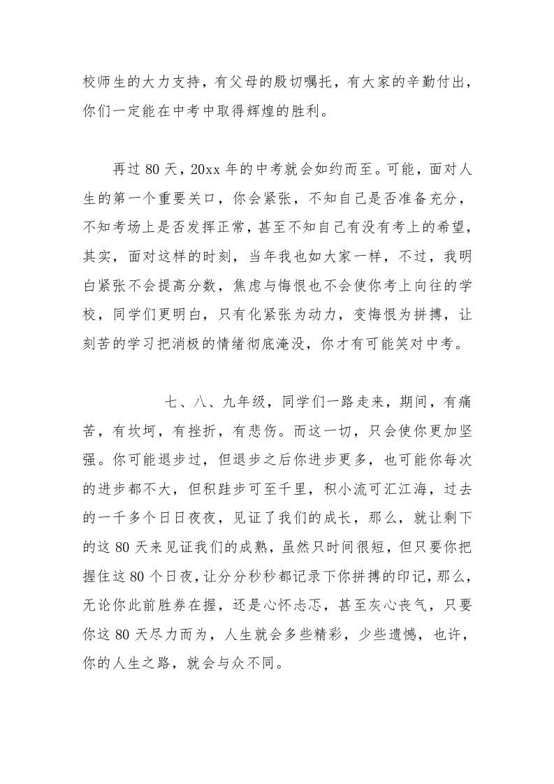 初三中考前80天动员会上,校长发言只有化紧张为动力,变悔恨为拼搏,让刻苦的学习把消极的情绪彻底淹没,你才有可能笑对中考 综合资料 王赞 2025-09-26 教务 资源下载下载价格1.2 下载币VIP免费升级VIP立即购买 ——预览已结束,还剩2页未读——开通会员后可免费下载高清完整文档 阅读全文