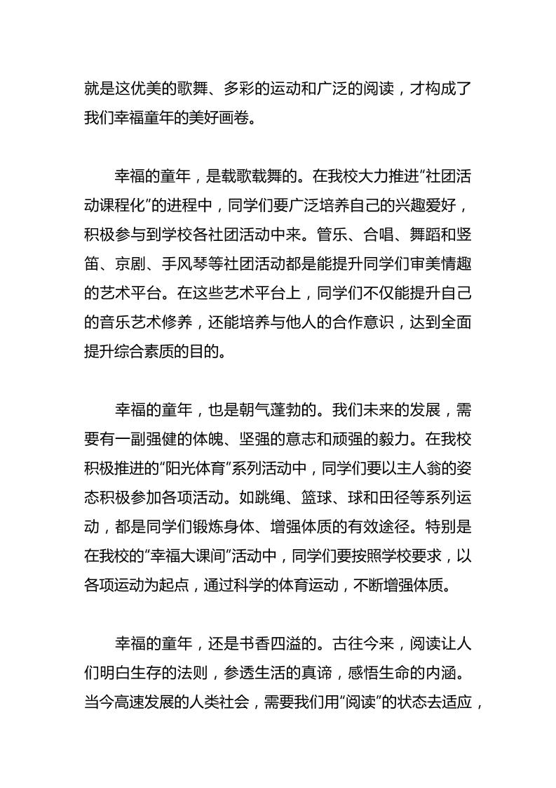 六一儿童节校长讲话:童年是每个人一生中最美好的时光 综合资料 幼师郝雪 2025-09-26 教务 资源下载下载价格0.8 下载币VIP免费升级VIP立即购买 ——预览已结束,还剩1页未读——开通会员后可免费下载高清完整文档 阅读全文