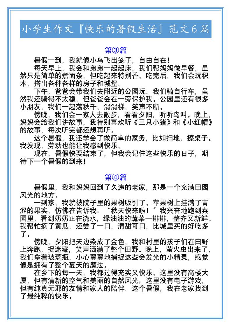 小学生作文『快乐的暑假生活』范文6篇-小升初语文 暑假 幼师PPT 2025-10-24 小升初 资源下载下载价格1.2 下载币VIP免费升级VIP立即购买 ——预览已结束,还剩1页未读——开通会员后可免费下载高清完整文档 阅读全文