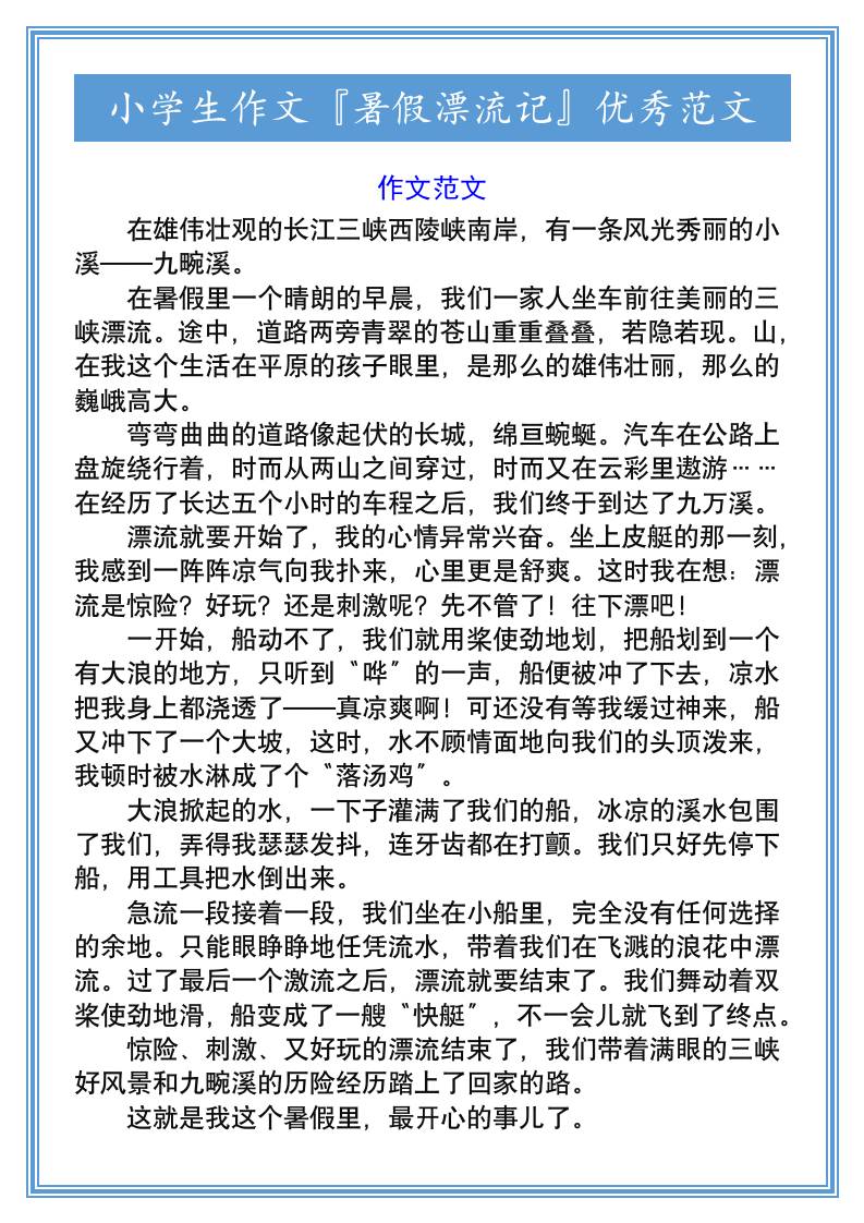 小学生作文『暑假漂流记』优秀范文-小升初语文 暑假 水果叶子 2025-10-24 小升初 资源下载下载价格1.2 下载币VIP免费升级VIP立即购买 ——预览已结束,还剩1页未读——开通会员后可免费下载高清完整文档 阅读全文