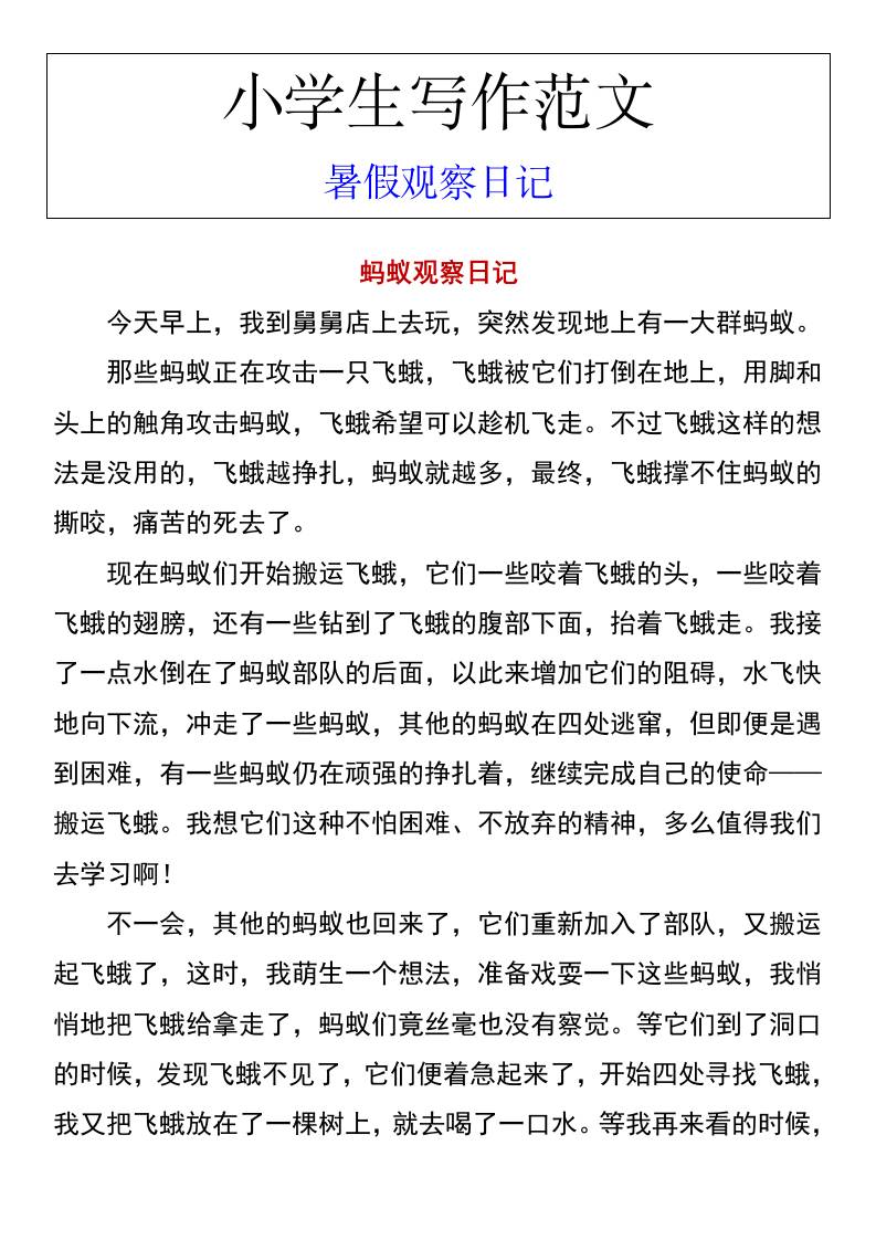 小学生写作范文暑假观察日记-小升初语文 暑假 2025-10-24 小升初 资源下载下载价格1.8 下载币VIP免费升级VIP立即购买 ——预览已结束,还剩2页未读——开通会员后可免费下载高清完整文档 阅读全文