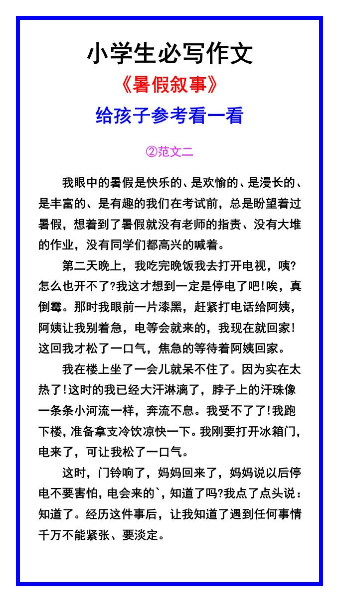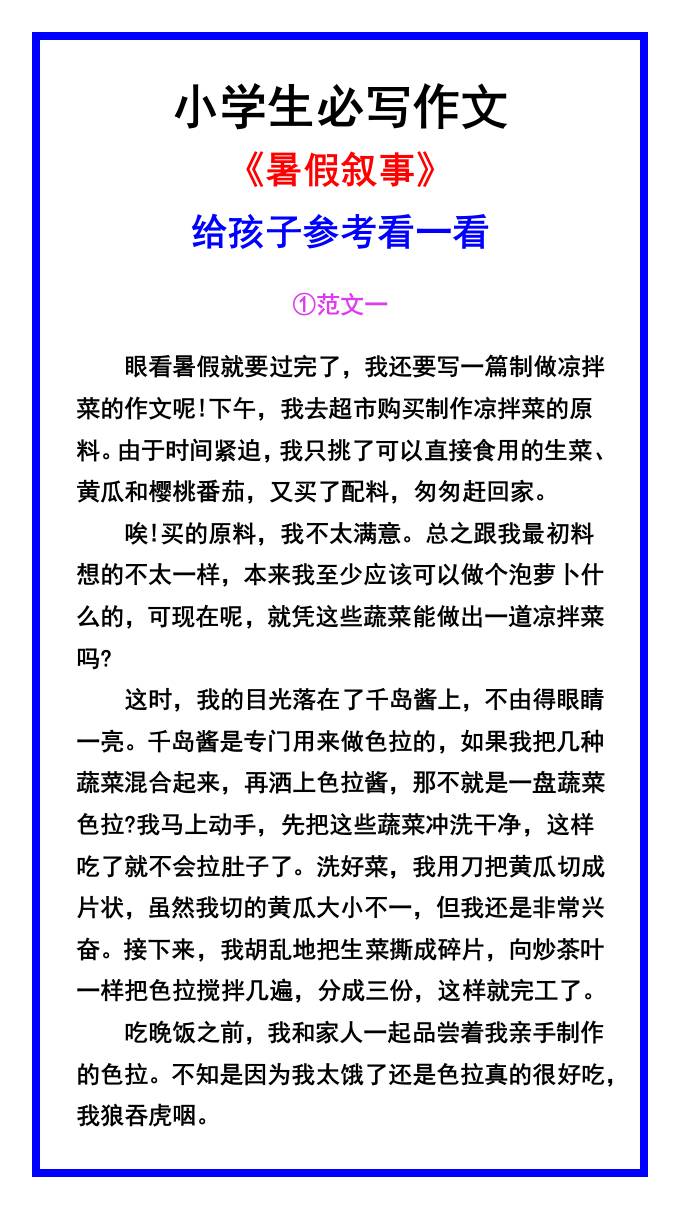 小学生必写作文《暑假叙事》范文素材-小升初语文 暑假 栀晴 2025-10-24 小升初 资源下载下载价格0.8 下载币VIP免费升级VIP立即购买 ——预览已结束,还剩1页未读——开通会员后可免费下载高清完整文档 阅读全文