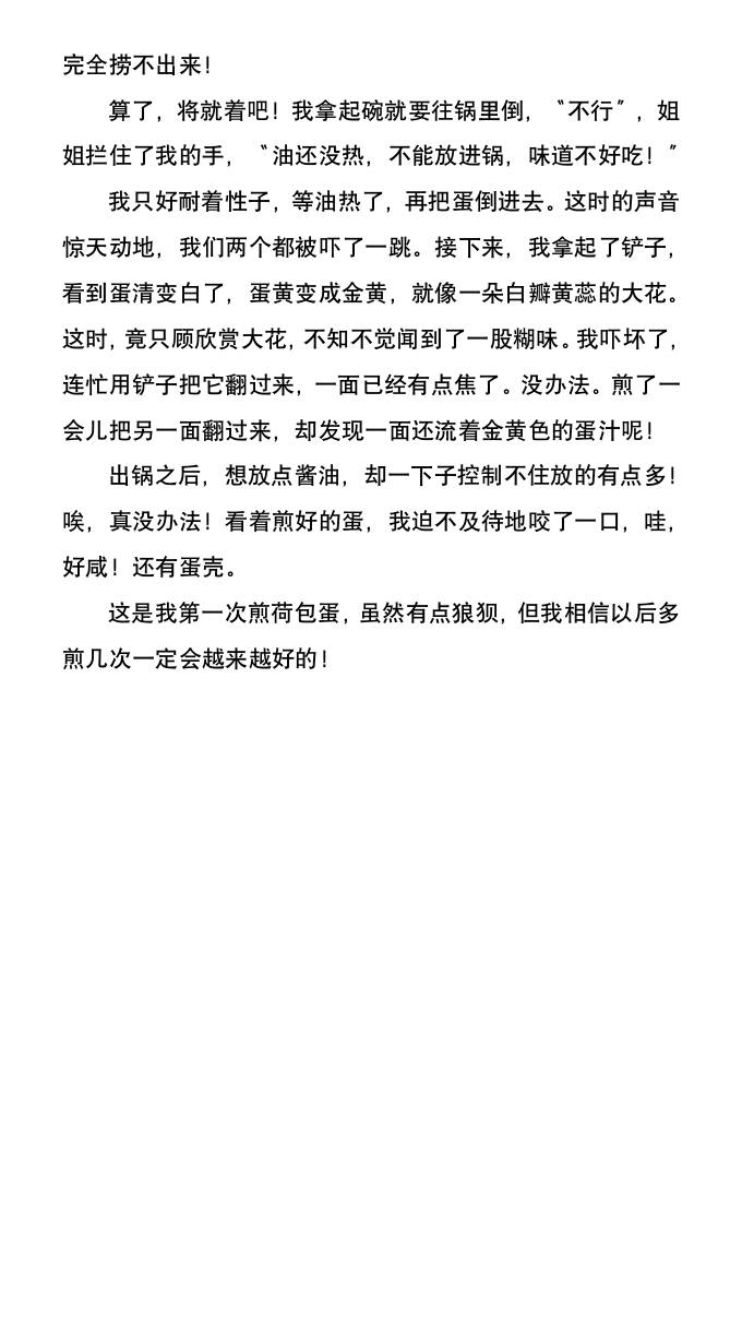 小学生暑假体验作文《第一次煎荷包蛋》-小升初语文 暑假 幼师PPT 2025-10-24 小升初 资源下载下载价格1.8 下载币VIP免费升级VIP立即购买 ——预览已结束,还剩2页未读——开通会员后可免费下载高清完整文档 阅读全文