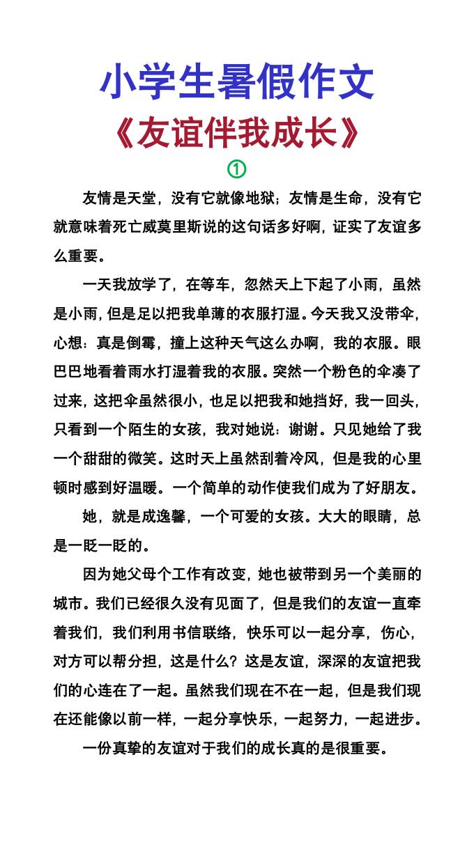 小学生暑假作文《友谊伴我成长》-小升初语文 暑假 刘波老师 2025-10-24 小升初 资源下载下载价格1.2 下载币VIP免费升级VIP立即购买 ——预览已结束,还剩2页未读——开通会员后可免费下载高清完整文档 阅读全文