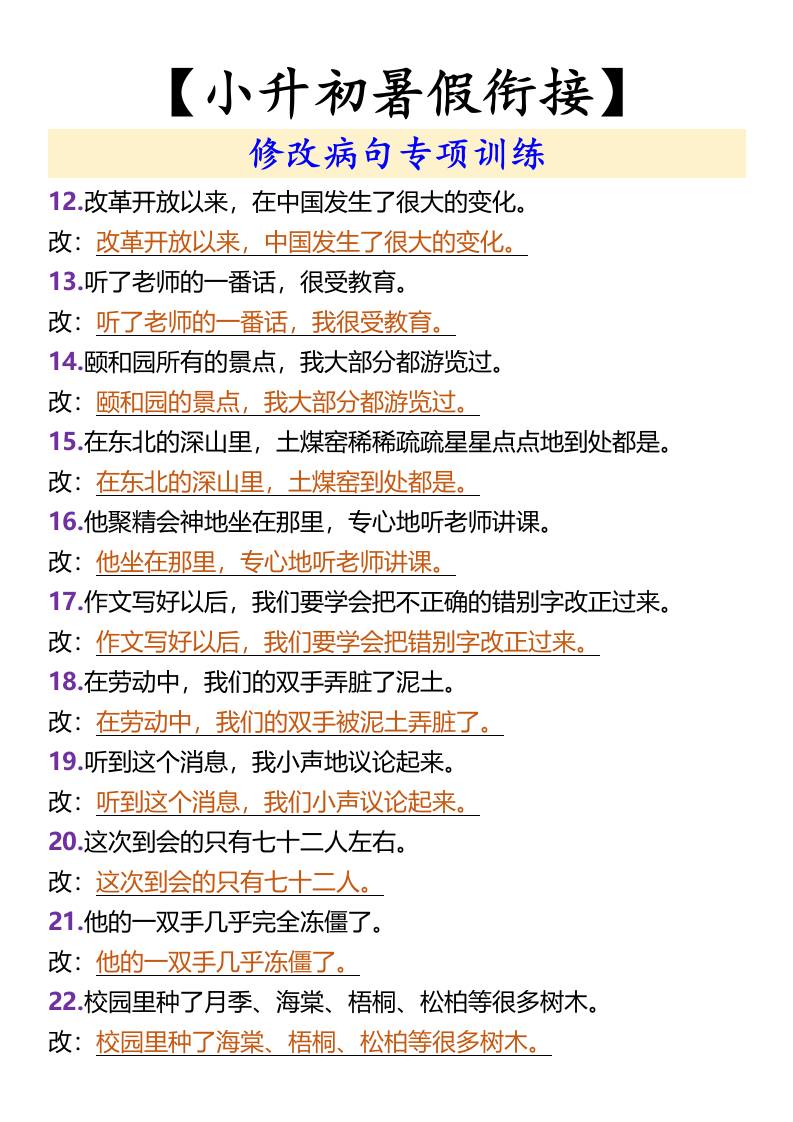 【小升初暑假衔接】修改病句专项训练-小升初语文 暑假 幼师常 2025-10-25 小升初 资源下载下载价格1.2 下载币VIP免费升级VIP立即购买 ——预览已结束,还剩1页未读——开通会员后可免费下载高清完整文档 阅读全文